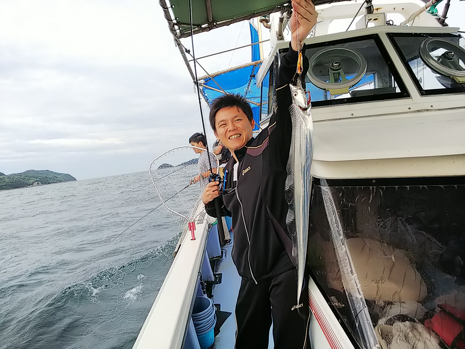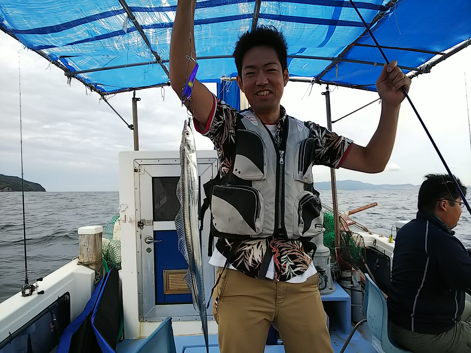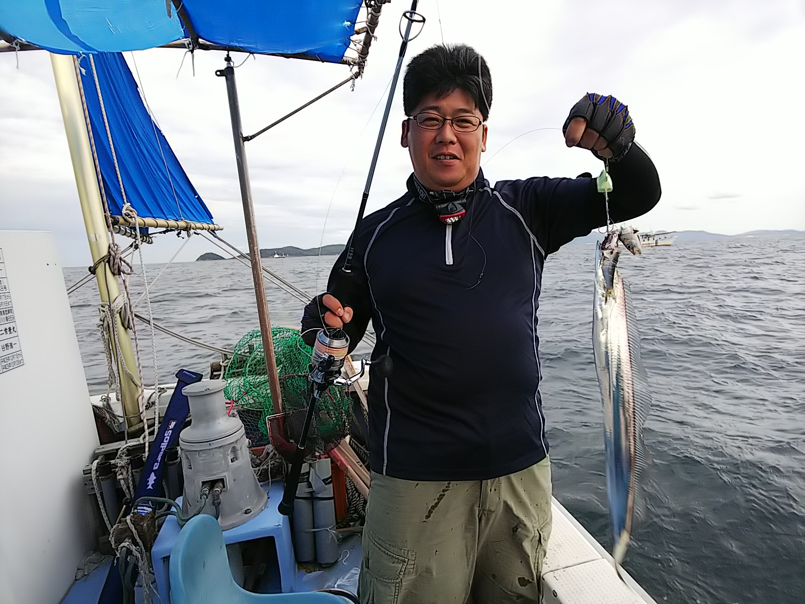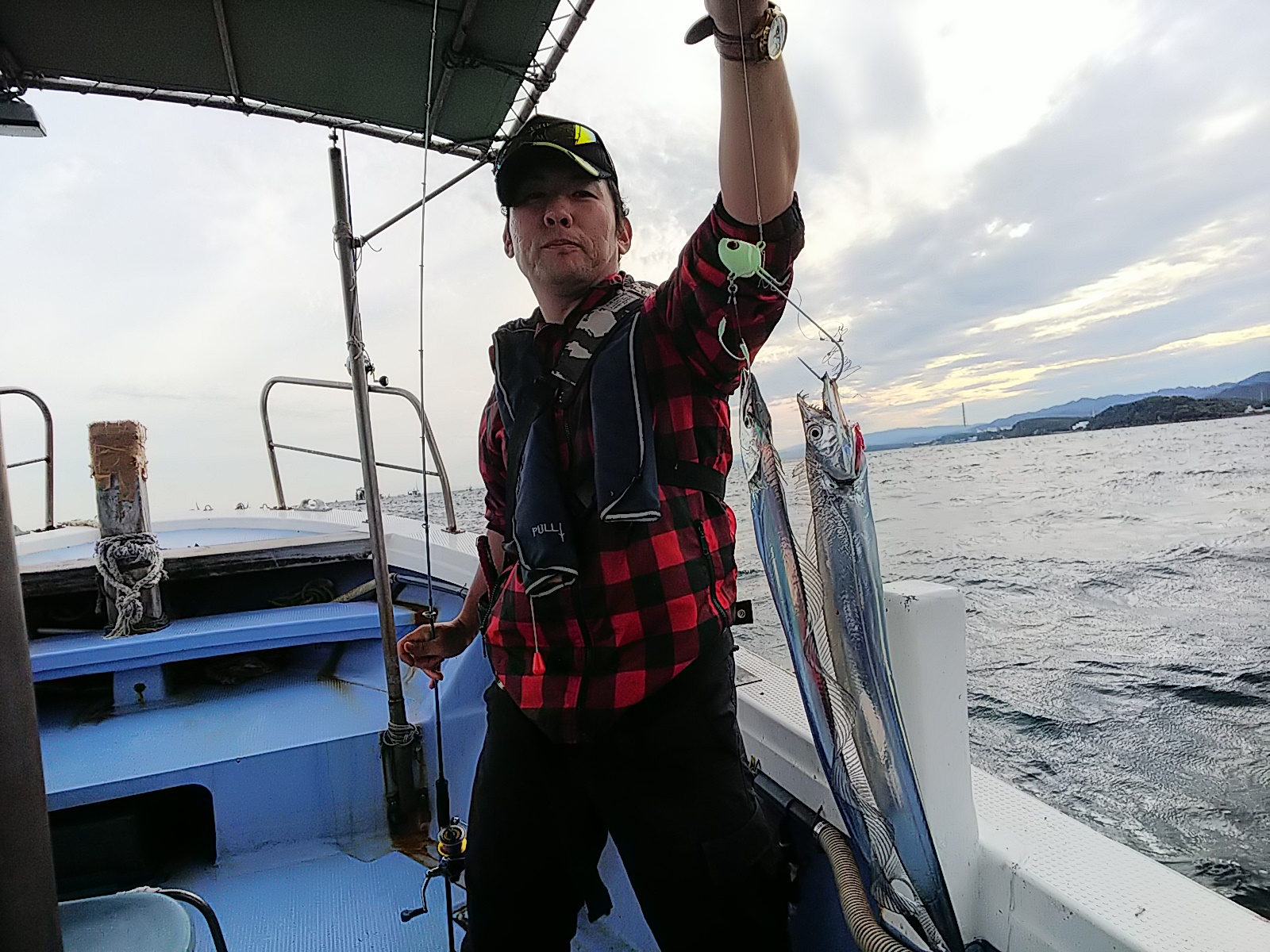 今日は、台風の影響ではない寒気で北よりの風吹き波あるなか、テンヤ、ジグ、アンチョビ色んな仕掛けでタチウオ釣り楽しんで貰いました(^^)