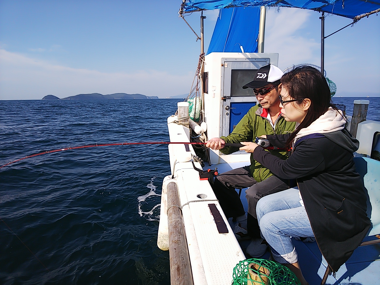 今日は、絶好のデート日和で、お客さんが彼女連れてきて(余計なの二人付いてきましたが(笑))、釣りデートしに来てくれました(^^)