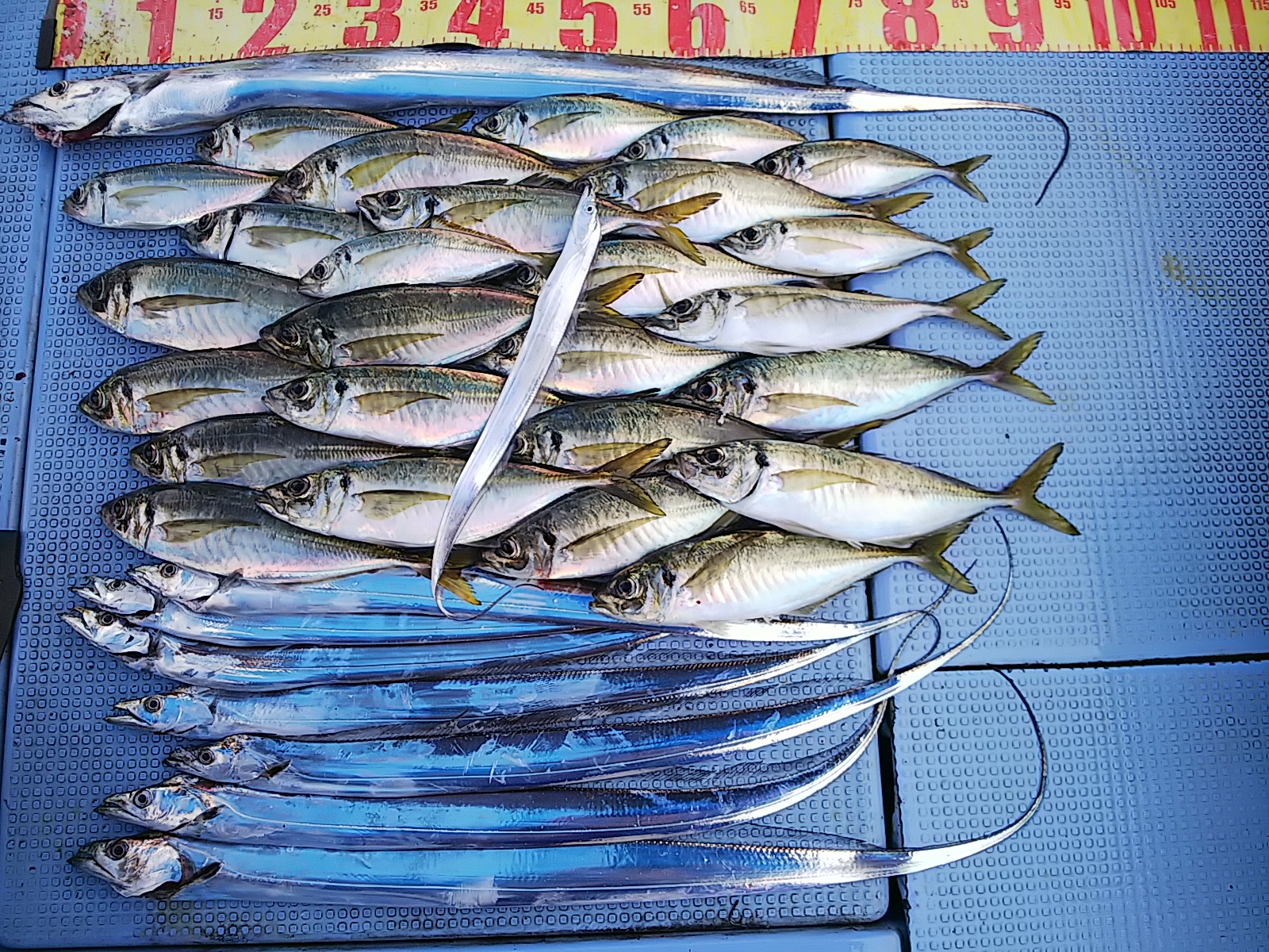 陽江さん、タチウオ釣れて、マアジ二桁のダブル混じりの最長寸も釣れて良かったですね(^^)