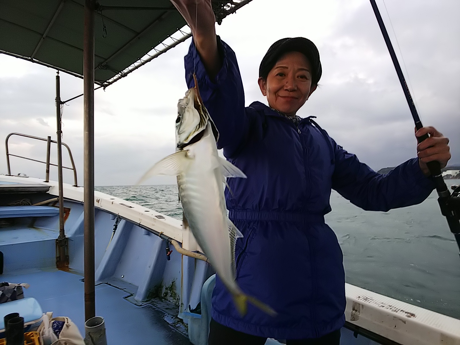 あいにくの風波ある悪条件の中でしたが、皆さん良型のマアジ釣れて良かったですね(^^)