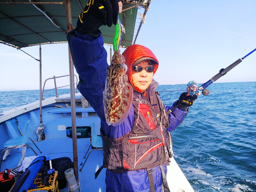 マダイ1匹・31センチ/アオリイカ杯・(胴長センチ・~胴長センチ)[バーチカル]/コウイカ13杯(胴長11センチ~胴長18センチ)[バーチカル]/アカイカ1杯・胴長16センチ[バーチカル]/イシモチ3匹(23センチ~28センチ)/チャリコ4匹