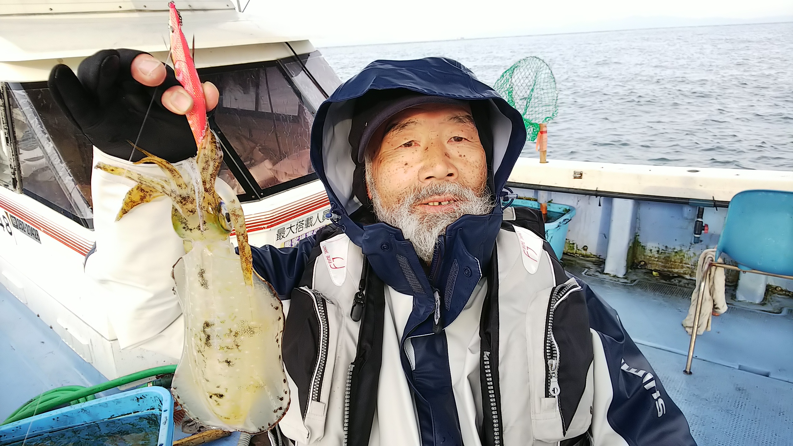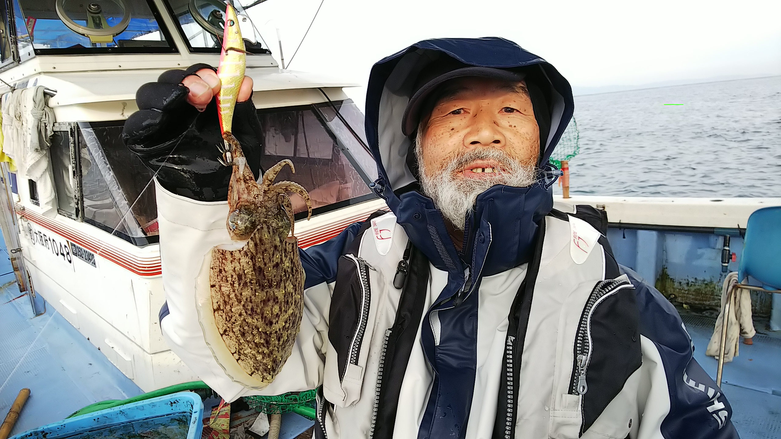 そんな中、小畑さん、辛抱して頑張った甲斐があり、28センチの良型のカワハギ釣れて、浜田さんもアオリイカとコウイカ釣れて良かったですね(^^)