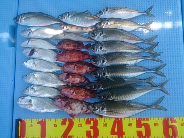 釣果 マアジ11匹(25?〜32?)/ガシラ6匹(15?〜22?)/キス1匹・22?/イシモチ7匹(21?〜25?)/トラギス1匹・17?