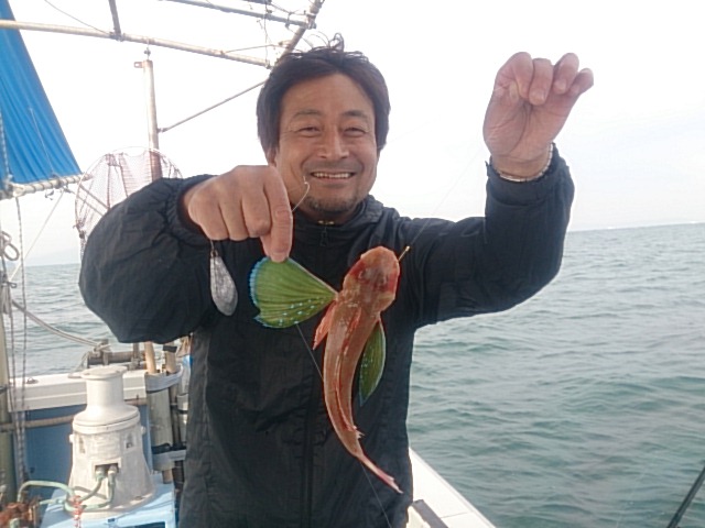 久しぶりにホウボウ釣れました! 2013年11月9日 今日は北より風少し吹き波少し高く肌寒かったです。 タチウオあたりあるが小さくなかなかのらず苦戦しましたが坊主出なくて良かったです。 五目釣りの方も苦戦して厳しい結果に終わりました(>___<) また、遊びに来て下さいね(^_^) 本日はありがとうございました(^_^)