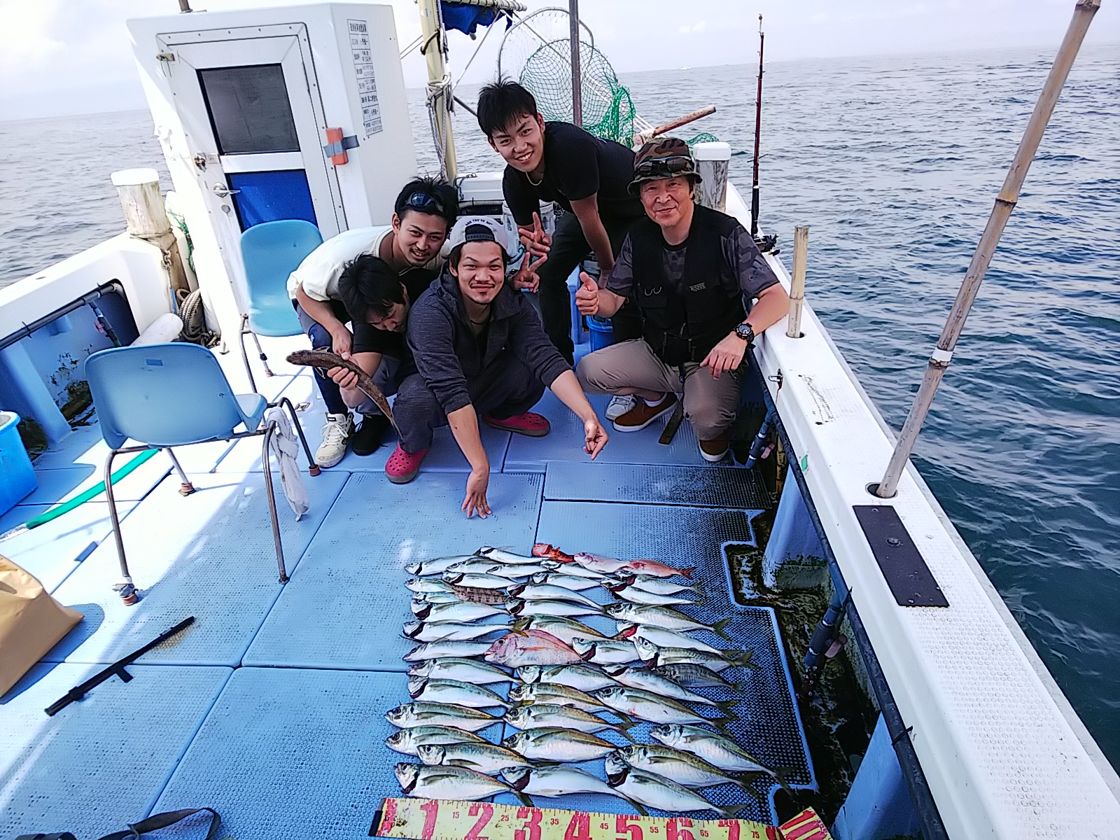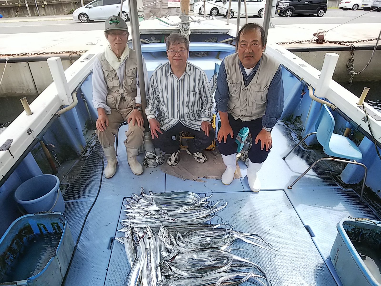 今日は、新規のお客さんの希望でタチウオ釣りしました(^^) 型小ぶりですが、アタリもずっとあって数釣れて十文楽しんで貰うこと出来ました(^^) 9月11日(月)晴れ 中潮 波なし 海水温25℃ 釣り人 辻様、澁谷様、木股様 仕掛け タチウオテンヤ 餌 イワシ 釣果 タチウオ54匹(64センチ~100センチ)澁谷さん24匹 辻さん23匹 …