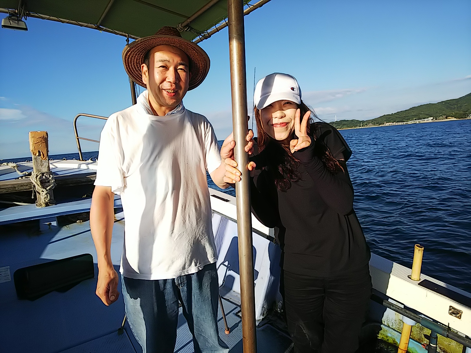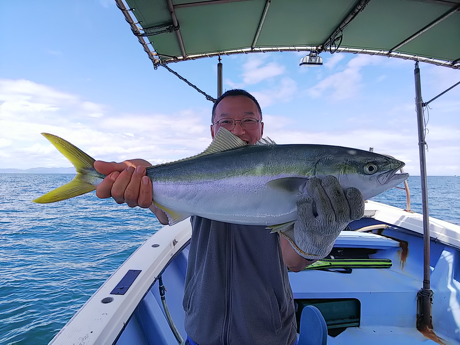 今日は、秋のような天気で心地好い1日でした(^^) 1日五目仕掛けで遊んで貰いました(^^) 前半潮流れず、苦戦しましたが後半マアジアタリ出してくれて、何とかオカズだけは確保出来ました。 最後に、武田さんが五目仕掛けにツバスとメジロ釣られ本人は喜んでますが、武田さんが釣ると沖が荒れたり釣れなかったりして、ろくなことないので、昼からが不安です(笑) 8月12日(土)晴れ 中潮 波なし 海水温27℃ 釣り人 小村様、武田御夫婦様、浜崎様 仕掛け 胴付き仕掛け 餌 …