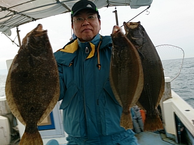 今日も穏やかで暖かい1日でした(^^) タイラバとノマセ頑張ってくれて、タイラバの方は掛かり浅くバレてしまいましたが、ノマセで昨日に引き続きヒラメ釣れてくれました(^^) 12月4日(日)晴れ/曇り 中潮 波少し高い 海水温18℃ 釣り人 中村様、石川様、浅田様 釣果 ヒラメ3匹(45センチ・・55センチ・56センチ)[ノマセ] 仕掛け 餌 タイカブラ 仕掛け ノマセ仕掛け 餌 …