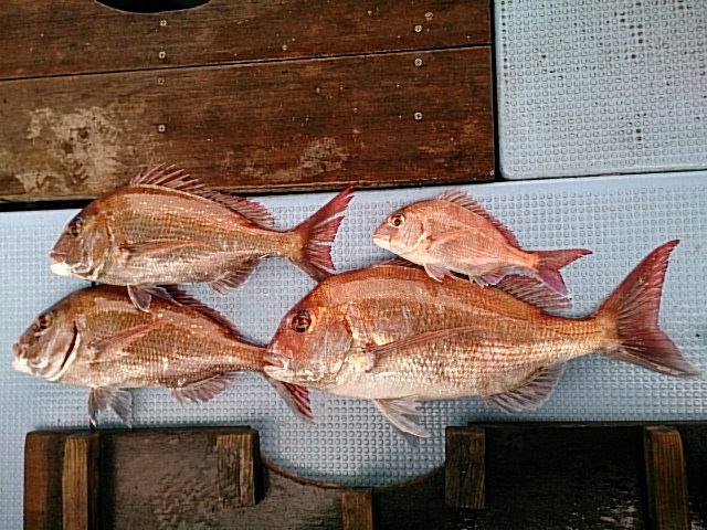 午前に引き続き、午後からもお客さんの好きに遊んでもらいました(^^) 12月3日(土)晴れ 中潮 波なし 海水温17℃ 釣り人 田中様、中山様、瀬戸様、平原様、道場様 釣果 マダイ1匹・43センチ[ヒトツテンヤ]/マダイ1匹・34センチ[タイカブラ]/アオリイカ1杯・胴長21センチ[ノマセ]/マアジ5匹(38センチ~42センチ・43センチ)[胴付き]/マサバ1匹・40センチ[胴付き]/タチウオ4匹[タイカブラ・ヒトツテンヤ]/チャリコ1匹[ヒトツテンヤ]/ガシラ2匹 仕掛け タチウオテンヤ アンチョビミサイル 餌 イワシ 仕掛け 胴付き仕掛け 餌 …
