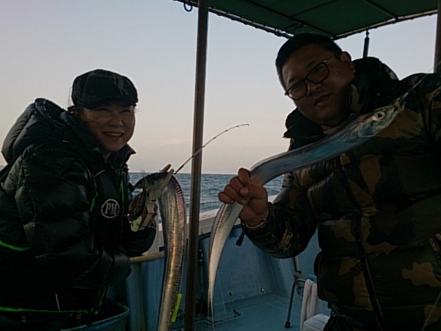 今日は、予想外に西よりの風吹き波高く釣りしにいくいなかでしたが、色々して楽しんでもらいました(^^) タチウオ以外は残念な結果に終わりました(T-T) 11月22日(火)晴れ 小潮 波少し高い 海水温20℃ 釣り人 野田御夫婦様 釣果 タチウオ21匹坊主なし二人ともメーターオーバー釣られる(72センチ~118センチ)[タチウオテンヤ] 仕掛け タチウオテンヤ 餌 …