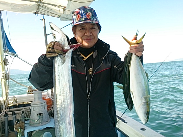 今日は、常連様が1人で来られ、色々な釣りして大名釣り楽しんでもらいました(^^) タチウオで遂にドラゴン釣れて、シマノのドラゴンダービーにやっとエントリー出来ました(^_^)v 後半はノマセでハマチ釣られ大満足されて帰られました(^_^)v 11月2日(水)晴れ 中潮 波なし 海水温21℃ 釣り人 出井様 釣果 タチウオ4匹(82センチ~120センチ)/[タチウオテンヤ]/ハマチ1匹・52センチ[ノマセ]/ツバス1匹・45センチ[ノマセ] 仕掛け タチウオテンヤ 餌 …