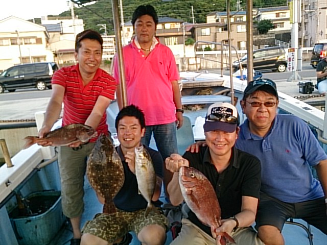 午後からは、タイカブラ、ヒトツテンヤ、落とし込みサビキ、ジギングして遊んでもらいました(^^) それぞれにアタリあり、それぞれ顔見ること出来て良かったです(^^) 9月10日(土)晴れ 長潮 波なし 海水温26℃ 釣り人 田中様、小林様、瀬戸様、平原様、道場様 釣果 ヒラメ1匹・44センチ[落とし込み]/マダイ2匹(38センチ・40センチ)[落とし込み]/シオ1匹・37センチ[落とし込み]/エソ1匹[落とし込み]/カスゴ1匹[タイカブラ] チャリコ1匹[ヒトツテンヤ] 仕掛け 餌 …