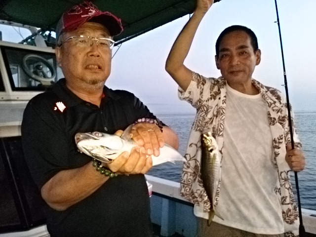 雷雨の中、頑張って良型のマアジ、タチウオ釣ってくれました (^^)