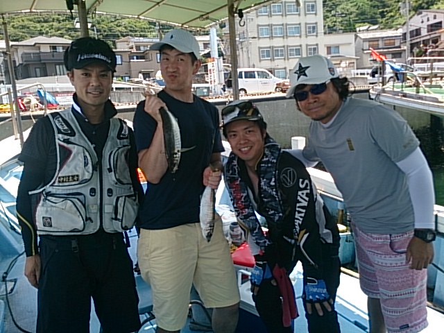 今日は初心者の方はマアジ狙い、経験者はタイラバでマダイ狙いで遊んでもらいました(^^) 天気とは裏腹に魚の食いの方は渋く、おかず程度しか釣れませんでした(T-T) 7月19日(火)晴れ 大潮 波なし 海水温24℃ 釣り人 狩場様、李様、川村様、中村様 釣果 マアジ8匹(25センチ~37センチ)/チャリコ6匹(18センチ~23センチ)/ガシラ2匹/豆アジ混じる 仕掛け 胴付き2本針 餌 青イソメ 仕掛け 餌 …