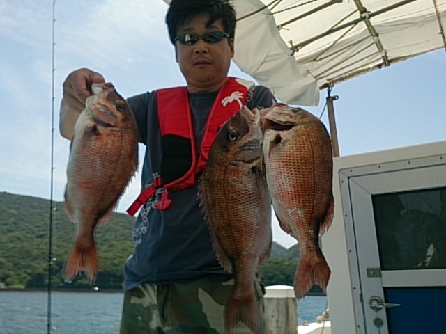前回のリベンジに来てくれましたが、今日も潮あまり流れずタイラバ苦戦しましたがリベンジ成功しました(^_^)v 7月20日(水)晴れ 大潮 波なし 海水温24℃ 釣り人 東様、西川様、川本浦野様、三ツ川様 釣果 マダイ4匹(40センチ・44センチ)[タイカブラ]//ガシラ1匹・18センチ[タイカブラ]/マアジ10匹(35センチ~37センチ)1匹クーラーの中 仕掛け 胴付き2本針 餌 …