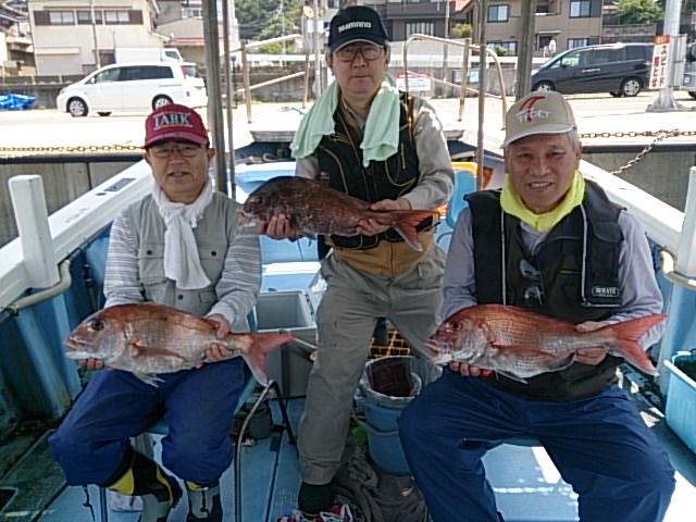 午後は、タイラバで遊んでもらいました(^^) アタリ少なかったですが、釣れれば全て良型でした(^_^)v 4月30日(土)晴れ 小潮 波なし 海水温16℃ 釣り人 田中様、飯田様、小林様、道場様 釣果 竿頭 道場さん マダイ54センチ 45センチ 41センチ 3匹/田中さん マダイ53センチ/飯田さん マダイ50センチ[タイカブラ] 仕掛け 餌 …
