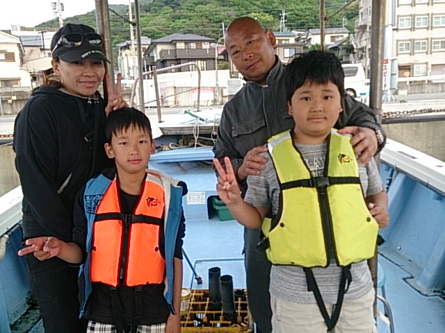GWならではの、ファミリーフィッシング楽しんでもらいました(^^) 家族団らんで楽しく釣りされてました(^^) 5月1日(日)晴れ 長潮 波なし 海水温16℃ 釣り人 小林御家族様 釣果 チャリコ/ガシラ/イシモチ/トラギス/アナゴ 仕掛け 胴付き2本針 餌 青イソメ 小林さん、毎回奥さんと子供の世話御苦労様です(^^) ルフィーナさん、今回も上手に釣られましたね(^^) 祐也君、友也君、二人とも自分で餌付け、アタリ取りあわせて上手に釣られましたね(^^) また、遊びに来て下さいね(^^) 本日はありがとうございました(^^) …