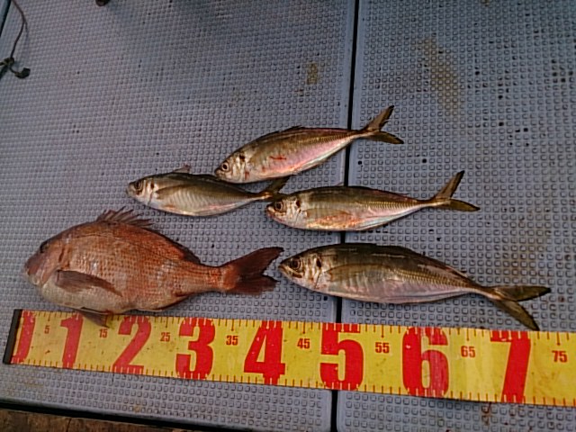 今日は、風吹きそうな予報でしたが、全く風吹かずベタ凪ぎの釣りしやすい1日でした。 メバル狙いましたが、メバル来ず、良型のマダイとマアジしか釣れませんでした(T0T) 1月8日(金)曇り 大潮 波なし 海水温15℃ 釣り人 野田様 釣果 マダイ1匹・42センチ[メバル仕掛け]/マアジ4匹(28センチ~34センチ)[メバル仕掛け] 仕掛け 餌 メバル仕掛け 野田さん、今年の初釣りどうでしたか? 本命のメバル来ず残念でしたね(T0T) 今日は、来週メバル釣れること願い、マダイとマアジ食べてください(^^) 本日はありがとうございました(^^) …