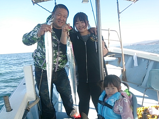 昨日は悪天候の為中止にしました(T-T) 今日は、天気回復し風波弱い釣りしやすい1日でした(^^) タチウオと五目釣りして、何とかおかず出来て良かったです(^^) 11月20日(金)晴れ 小潮 波なし 海水温20℃ 釣り人 大阪様、大重様、奥田様、豊岡様、津村様、岩見様 釣果 タチウオ各自クーラー入れられ数えれませんでした 坊主無し匹(?センチ~110センチ)[タチウオテンヤ]/匹・センチ[胴付き3本針]/五目は、マアジ顔見る程度とチャリコとトラギスばっかりでした(T-T) 仕掛け タチウオテンヤ アンチョビミサイル 餌 イワシ 仕掛け 胴付き3本針 …