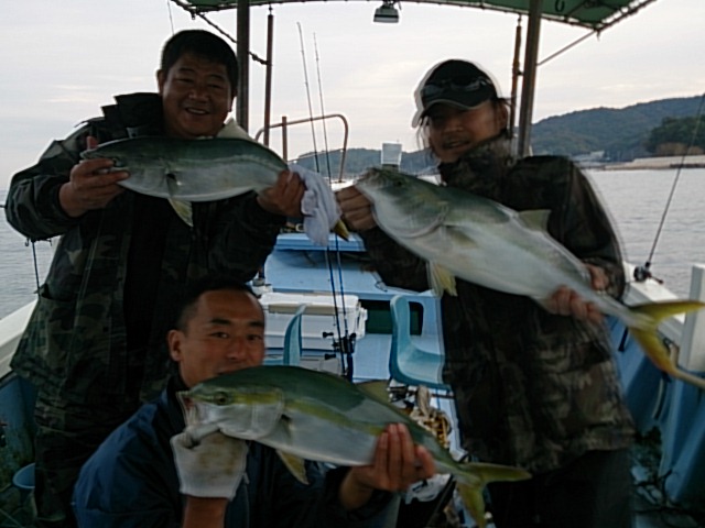 今日は、雨降ったり止んだり鬱陶しい天気の中、ノマセ大好きな方々が来られ、今回もメジロ釣られ喜ばれました(^o^)v 11月7日(土)曇り/雨 若潮 波なし 海水温21℃ 釣り人 川合様、川上様、汐待様 釣果 メジロ23匹(60センチ~72センチ)[ノマセ]/川合様当船の記録更新二桁の10匹 川上様7匹 汐待様6匹 皆さん良く釣られました! コウイカ1杯・胴長18センチ[バーチカル] 仕掛け ノマセ仕掛け 餌 活きアジ 仕掛け 餌 エギ …