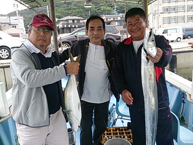 今日は、雨も降らずどんより釣り日よりで良型のタチウオ釣れ良い土産になり、最後の最後にメジロも釣れて良かったです(^^) 一人だけ、呪縛に侵されてた人いましたが、後半呪縛から解放され釣れました(笑) 10月11日(日)曇り大潮 波なし 海水温23℃ 釣り人 川合様、重村様、河内様 釣果 メジロ1匹・62センチ[ノマセ]/タチウオ匹(67センチ~120センチ)[タチウオテンヤ・アンチョビミサイル]/イシモチ1匹・25センチ 仕掛け ノマセ仕掛け 餌 活きアジ 仕掛け タチウオテンヤ アンチョビミサイル 餌 イワシ 仕掛け 胴付き3本針 餌 …