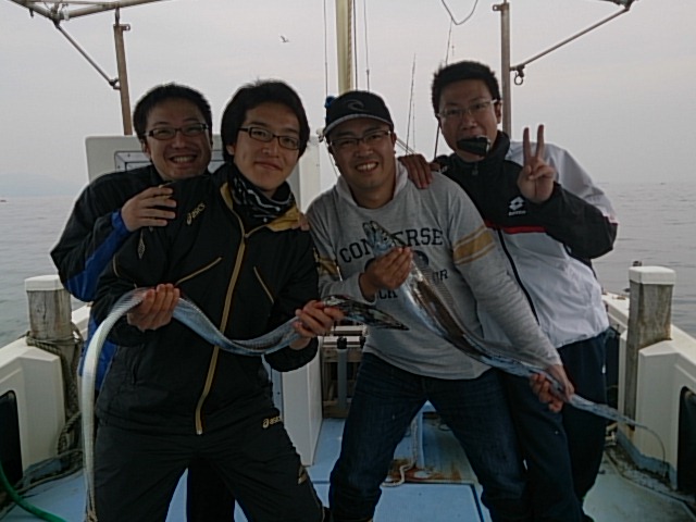 午前のお客さんと、今日のタチウオ攻略パターン見つけたのを、午後からも同じ攻略パターンで攻めたら見事にはまり、皆さん釣れてくれて良かったです(^^) 最後少しだけ五目釣りしました(^^) 最後の最後に片天でコショウダイの55センチ釣れて、良い土産出来ました(^_^)v 10月9日(金) 中潮 波なし …