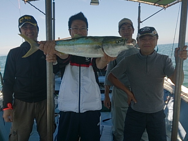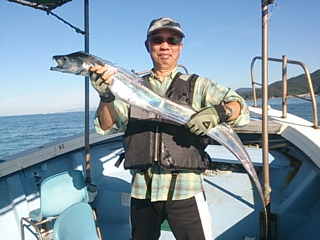 爆弾低気圧も去り、秋晴れのいい天気になりました(^^) タチウオ、五目、ノマセ好きに遊んでもらい色々釣れてました(^^) 10月3日(土)晴れ 中潮 波なし 海水温23℃ 釣り人 小村様、矢野様、岩橋様、木本様 釣果 メジロ1匹・65センチ/タチウオ15匹(63センチ~83センチ)[タチウオテンヤ]/マダイ2匹・30センチ[胴付き3本針]/マアジ1匹・30センチ/チャリコ2匹・22センチ 仕掛け ノマセ仕掛け 餌 活きアジ 仕掛け タチウオテンヤ 餌 イワシ 仕掛け 胴付き三本針 …