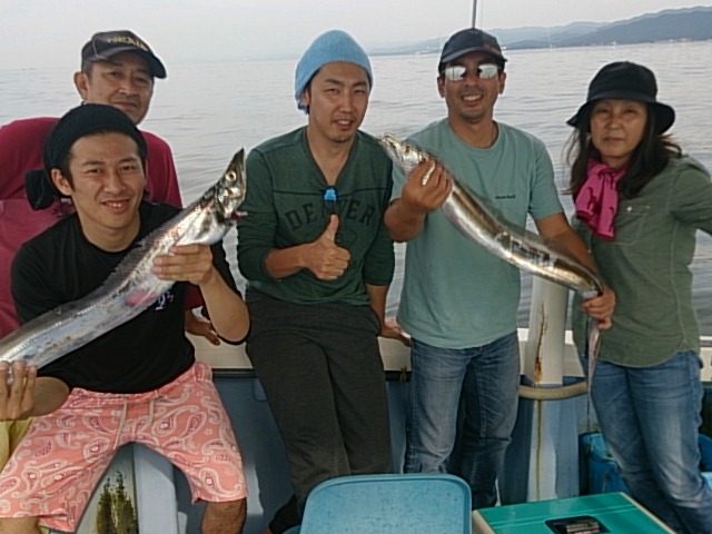 午後から、タチウオ狙いましたが、昨日までの午後とは違いアタリ少なく苦戦しました(T0T) 昨日のあの人が釣ったばっかりに、今日は厳しい1日になりました(笑) 9月22日(火)晴れ 長潮 波なし 海水温24℃ 釣り人 大滝親子様、松尾様、角田様、秦様 釣果 タチウオ?匹(61センチ~111センチ・115センチ・120センチ)[タチウオテンヤ] 仕掛け タチウオテンヤ 餌 …
