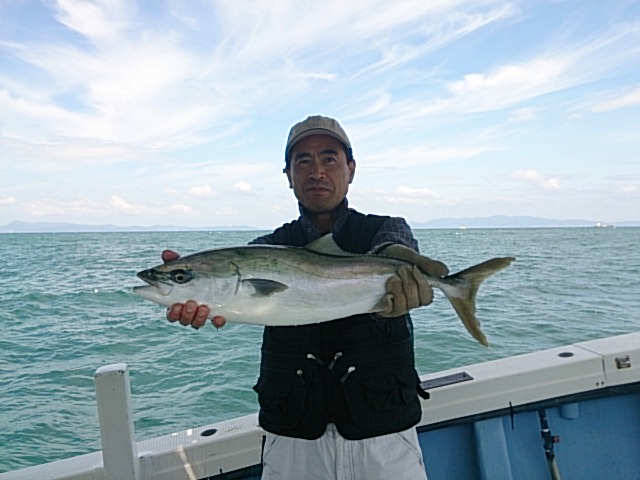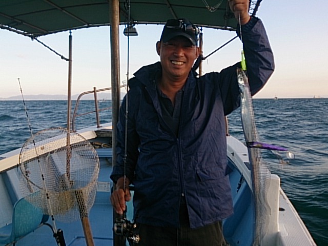 夜明けまで、北よりの風強く心配しましたが、時間経つに連れて落ち着いてきて良かったです。 今日のお客さん、なかなかタチウオの時に恵まれず、本日やっと三年後しにタチウオ釣り出来て喜んでくれました(^^) 良く釣れたのですが型小ぶりばっかりなので、止めて残り時間好きなことして遊んでもらいました(^^) 9月19日(土)晴れ 中潮 波少し高い …