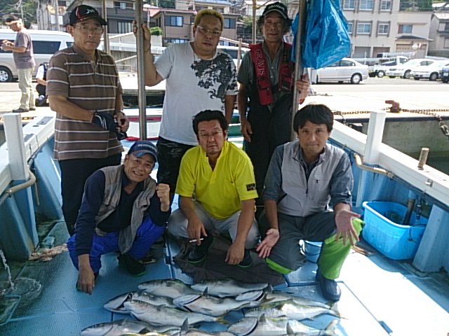 今日は雨の心配全くないと思ってましたが、夜明けからゲリラ豪雨に襲われ最悪でした(T0T) そんな中、初めてお越しの高槻爆釣会の皆さんが、ノマセ頑張ってくれて、地合いに入れ食いなり、皆さん釣られ坊主なく持って帰ってもらえました(^_^)v 多分、二時間でメジロ釣り上げた数としては記録更新です!(^_^)v 尚、メジロ以外は、マアジ、ガシラおかず程度釣れました(^^) 9月4日(金) ゲリラ豪雨/晴れ 小潮 波なし 海水温25℃ 釣り人 高槻爆釣会様 釣果 メジロ20匹(60センチ~センチ)[ノマセ] 仕掛け 胴付き3本針 餌 青イソメ 仕掛け …