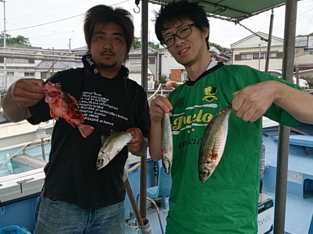 当初雨の予報出てましたが、晴れてくれて風波ない釣り日よりになってくれました。 そんななか、マアジ主の五目釣り楽しんでもらいました(^^) 他の人たちは、たまにしかマアジ顔見れないのに対し、1人だけコンスタントに釣れてたので、皆で首かしげ笑ってました(笑) 6月14日(日) 晴れ/曇り 中潮 波なし 海水温20℃ 釣り人 雄也様、馬木様、豊留様、佐藤様 …
