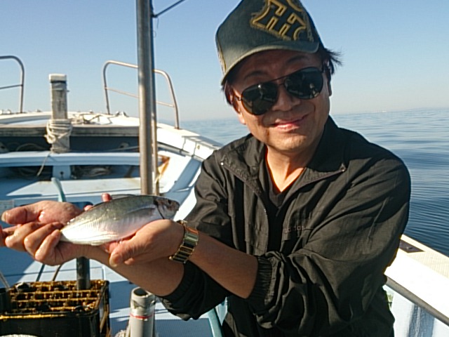 午後になってから、風おさまり波もなく、絶好の釣り日和になりました。 午前同様、食い渋でしたが、何とか楽しんでもらえました。 船の回りに、サメやスナメリ?イルカ?ぽいのが、うろちょろしに来て、ひとときの間癒されました(^^) 6月4日(木) 晴れ 中潮 波なし 海水温20℃ 釣り人 大門様、出井様 釣果 マアジ1匹・27センチ/ガシラ1匹・18センチ/カスゴ3匹(26センチ~29センチ)/チャリコ4匹(17センチ~22センチ)/イシモチ1匹・20センチ/キス1匹・20センチ/トラギス3匹(11センチ~15センチ)/コブダイ1匹・46センチ/ 仕掛け …