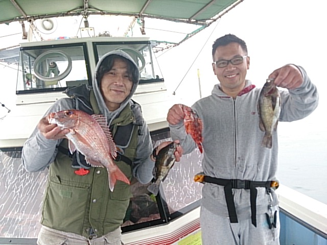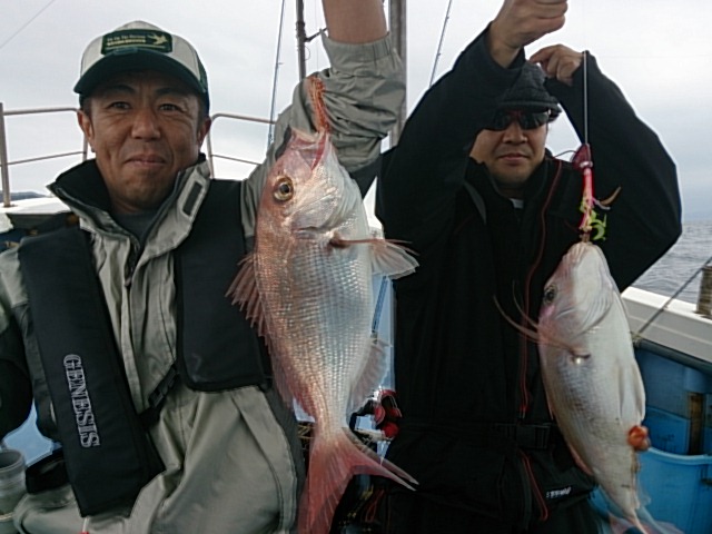 風波高い中、鯛カブラ頑張ってくれました! 全員に良型マダイ釣れてくれて良かったです(^^) 皆さん、お待ちかねのタイラバシーズンそろそろシーズン迎えると思うので、皆さんじゃんじゃん狙いに来てくださいね(^^) 4月5日(日) 雨 大潮 波風強し 海水温13℃ 釣り人 河野様、中野様 釣果 マダイ3匹・(25センチ・46センチ・48センチ)[鯛カブラ] 仕掛け 餌 …