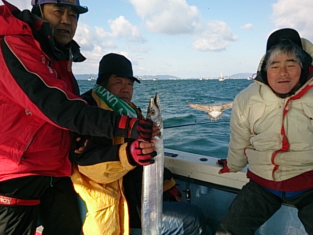 今日は、探見丸アキュフィッシュ取り付けて初めて探見丸見ながらの釣りをしました! 時々、魚マークの横に大きな数字付きで表れると、皆さん興奮しながら釣りを楽しんでました! 探見丸お持ちの皆さん持参してきて下さいね(^^) 釣果の方は、潮周り良くなりタチウオ活性あって、坊主なく全員釣れて土産出来ました(^^) 今日の食い気だと、今月はまだタチウオ狙えるかも知れませんね(^^) 1月11日(日) 晴れ 中潮 …