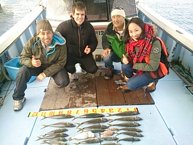 昨日は中国人、今日は、ニュージーランド人とウズベキスタン人来られ、昨日は中国語、今日は英語飛び交ってました(^^) 今日も波高い中、タチウオ狙いましたがアタリ取れず諦め五目釣りしてマアジ釣れたので土産出来たし楽しんでもらえて良かったです(^^) 因みに昨日は速攻酔われ直ぐ帰ったので釣果ありませんでした。 11月27日(木) 晴れ 中潮 …